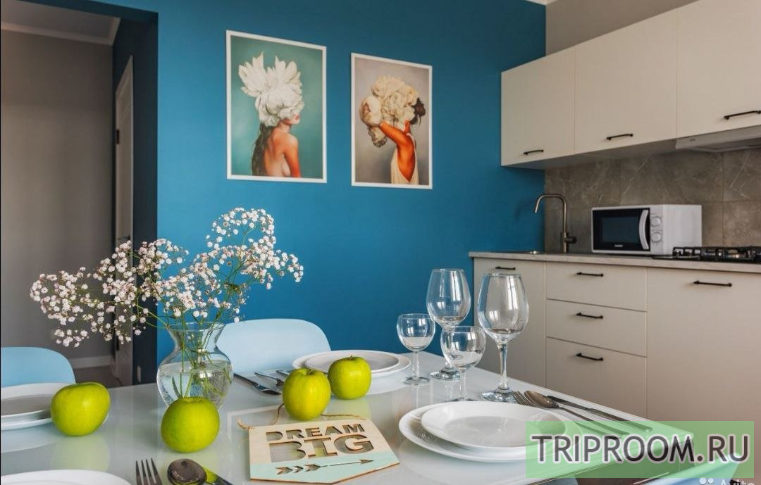 Площадь квартиры идеально подходит для комфортного размещения 4-5 гостей. Мебель современная и функциональная: стол, стулья и кухонный гарнитур 🍽️.